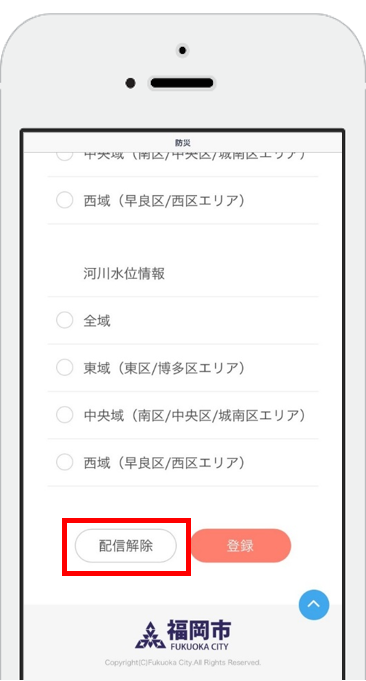 配信解除したい項目の「変更」ボタンをタップし画面下部の「配信解除」ボタンをタップしてください。