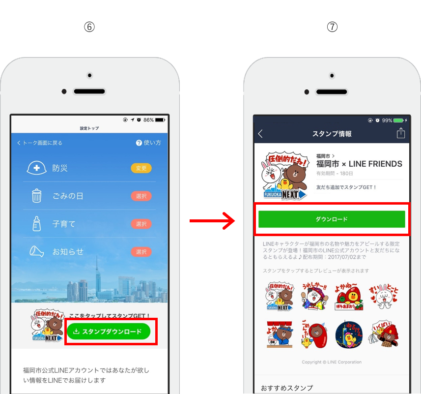 「福岡市LINE公式アカウント」使い方/スタンプのダウンロード方法