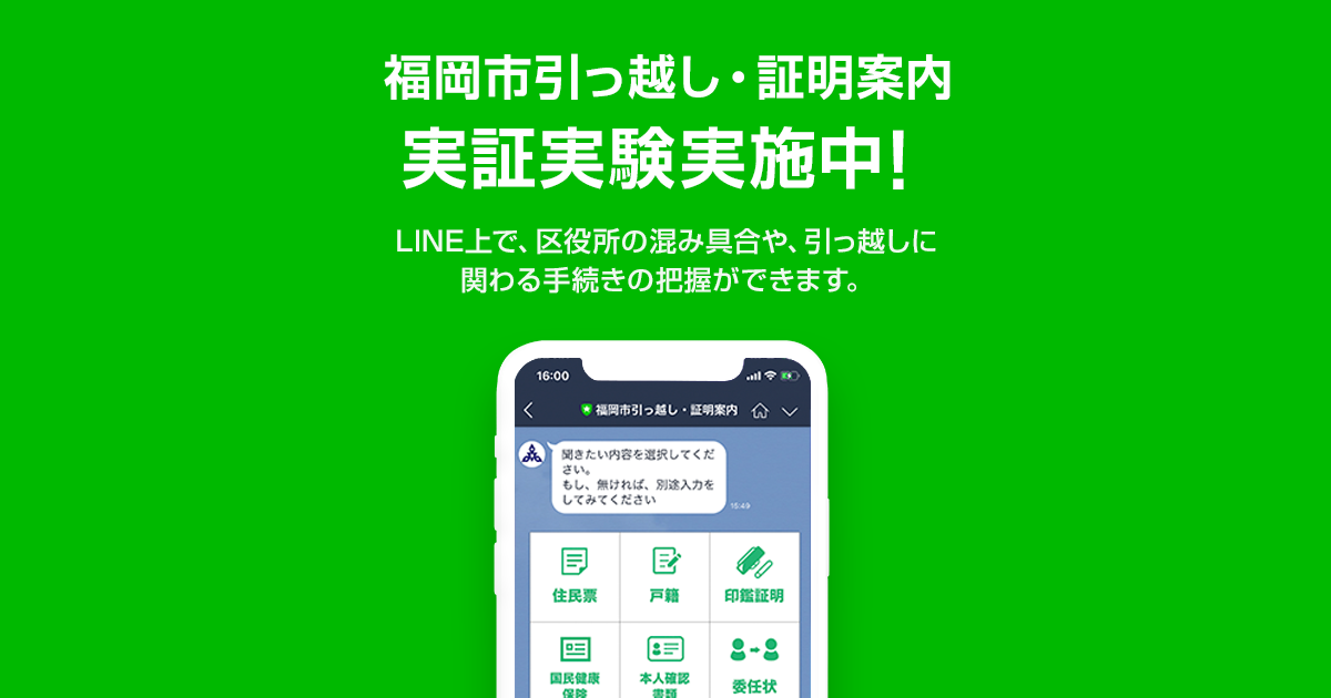 福岡市引っ越し・証明案内の使い方 〜引っ越しの手続きや区役所の混み具合をLINEで確認〜